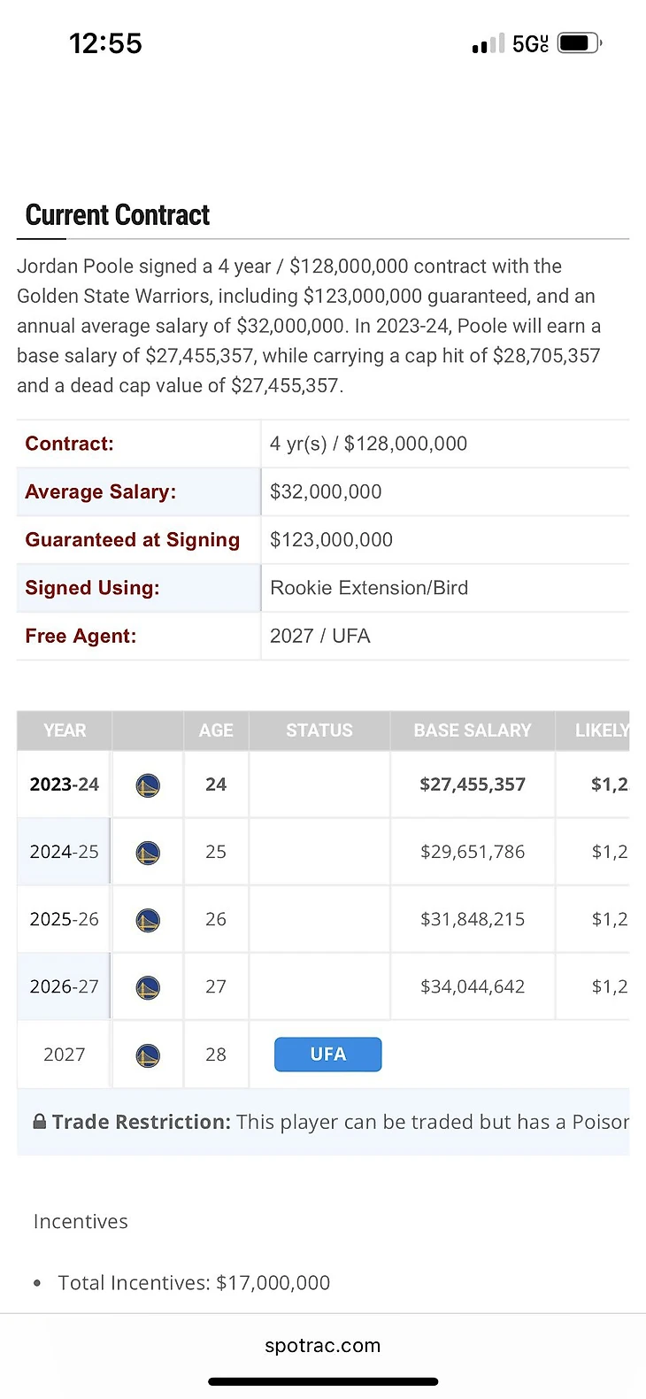 Летом прошлого года «Голден Стэйт» продлил контракт Пула на 4 года, за которые защитник получит 128 миллионов долларов.