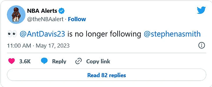 Центровой «Лейкерс» Энтони Дэвис отписался от телеведущего ESPN Стивена Эй Смита в соцсети.