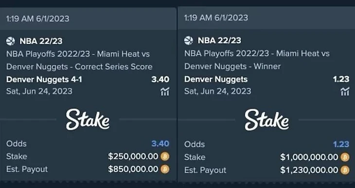 Канадский музыкант сделал две ставки: 1 млн долларов на победу «Наггетс», а также 250 тысяч на точный счет серии – 4-1.