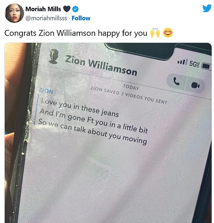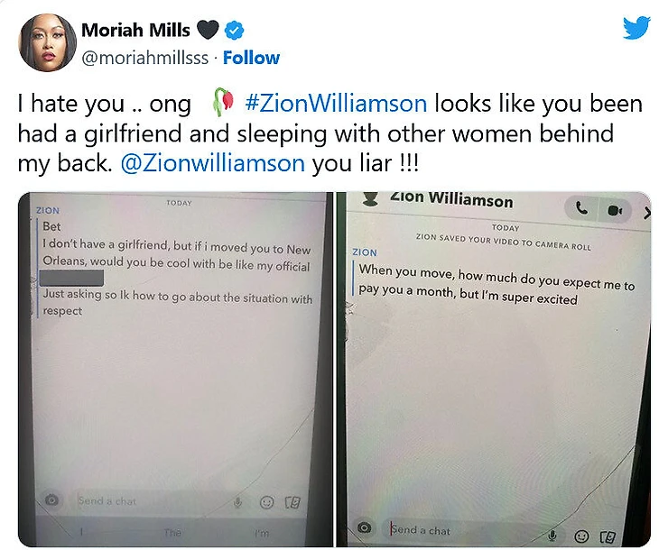 «Поздравляю, Зайон Уильямсон, рада за вас. Похоже, у тебя была девушка и ты спал с другими женщинами за моей спиной. Зайон Уильямсон, ты лжец.
