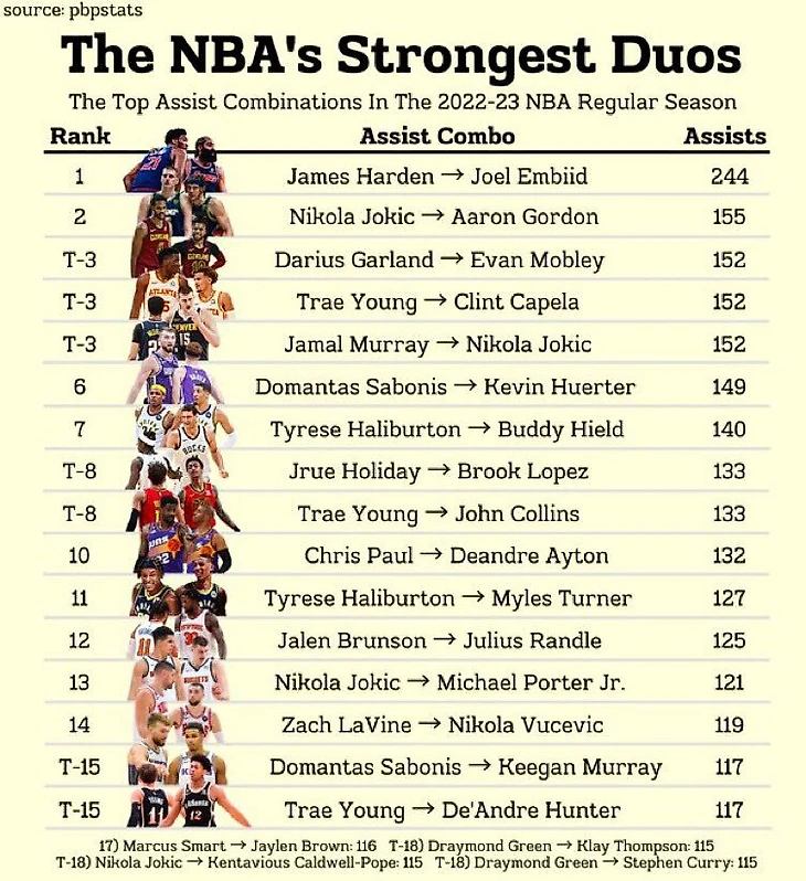 NBA University представил статистику лучших связок НБА по количеству результативных передач в регулярном чемпионате-2022/23.