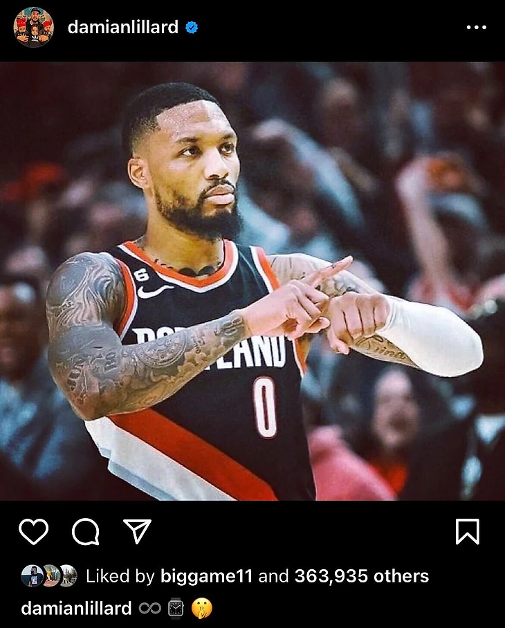 Лиллард на своей странице в соцсети выложил свою фото с жестом «Dame Time», приложив эмодзи бесконечности.