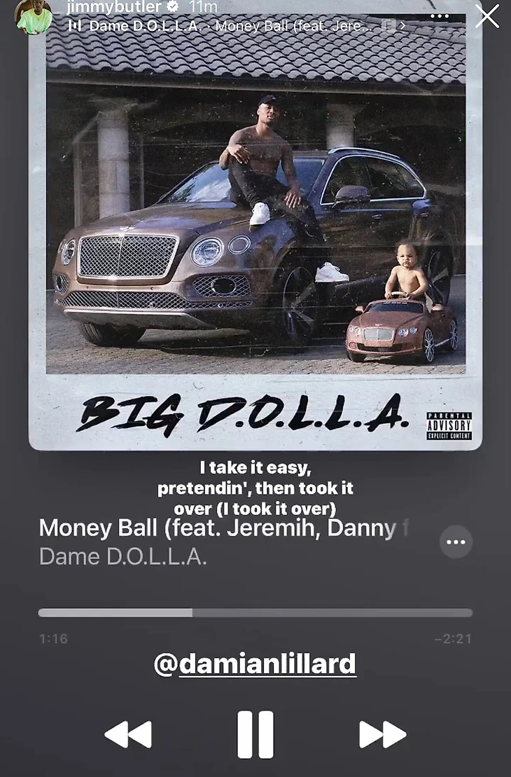Джимми Батлер опубликовал в сторис трек Дэмиана Лилларда