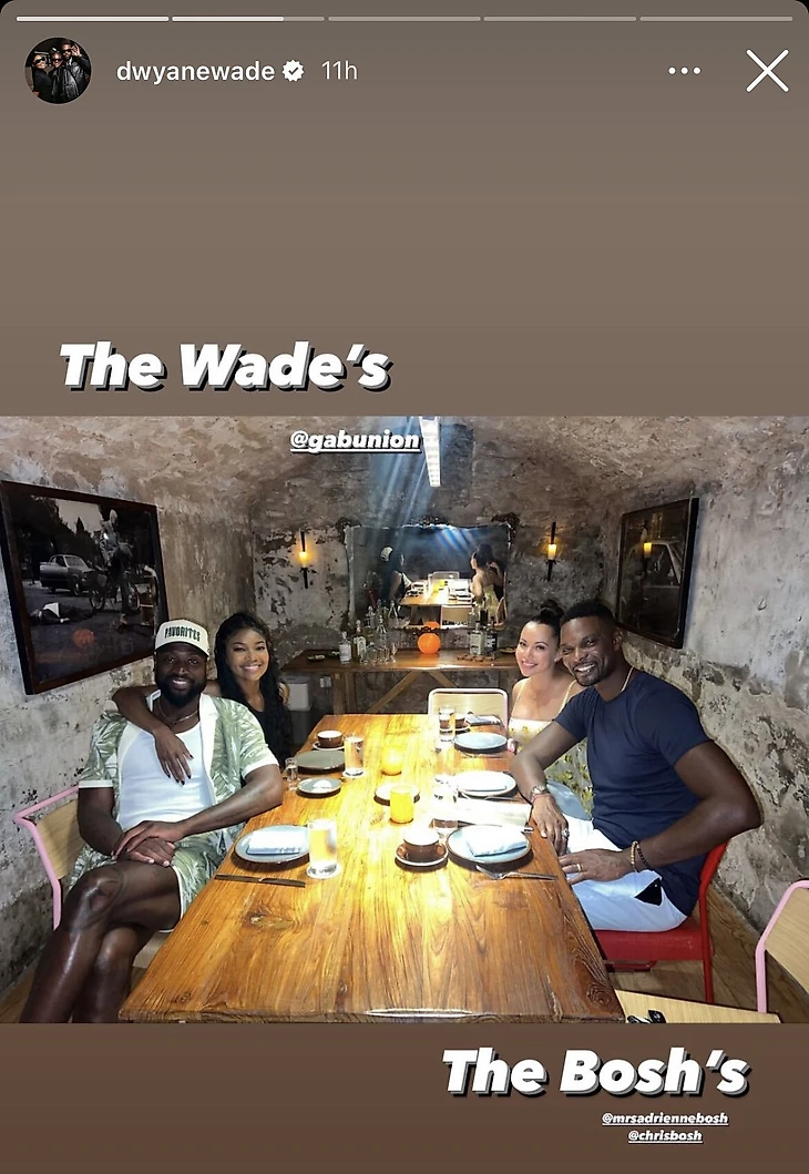 Уэйд выложил фотографию совместного ужина с Бошем. Бывших игроков НБА сопровождали супруги.