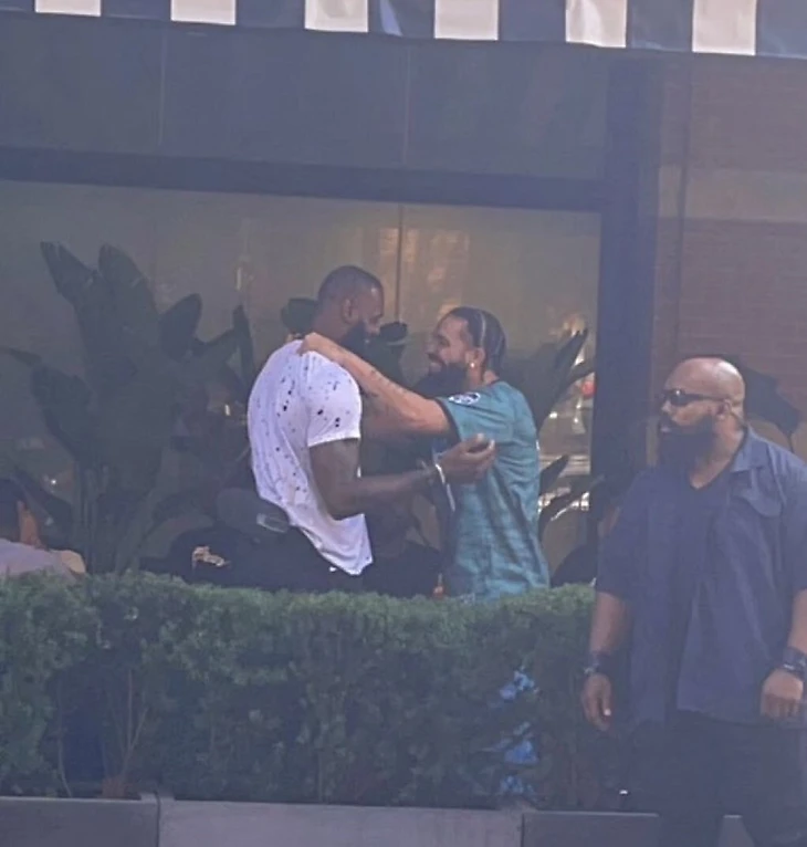Позже к Джеймсу в ресторане присоединился канадский рэпер Дрейк.