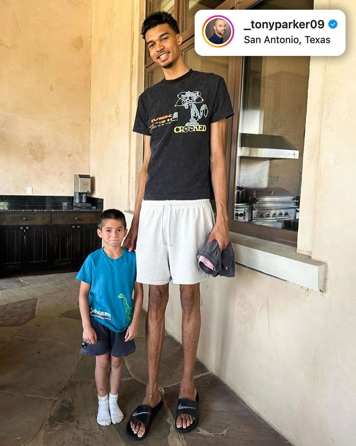 Центровой «Сан-Антонио» Виктор Вембаньяма сфотографировался с маленьким сыном легенды техасского клуба Тони Паркера.