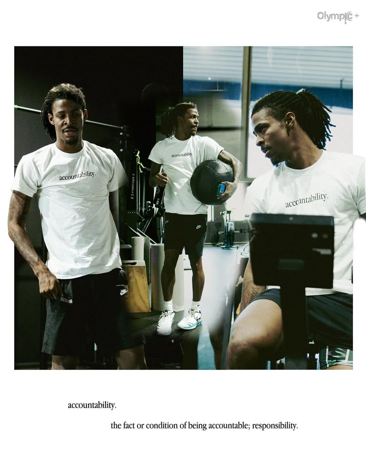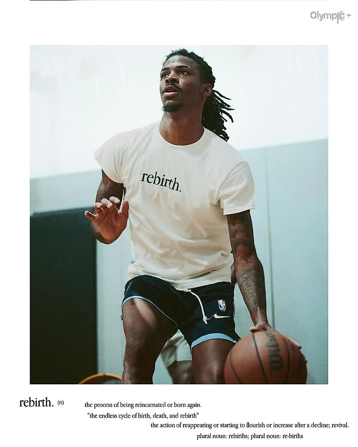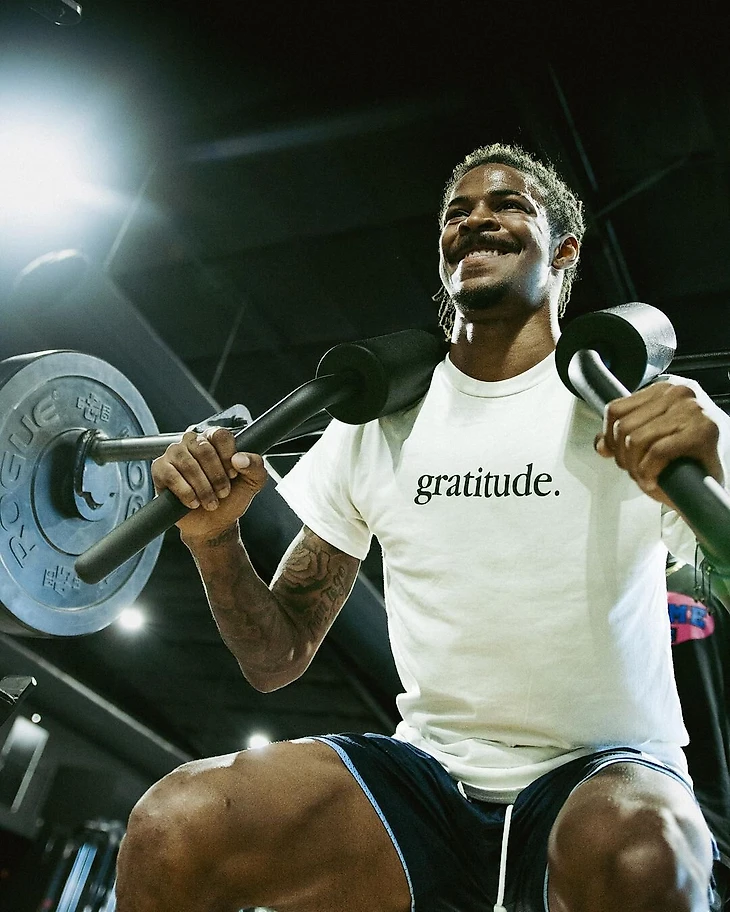 Джа Морэнт тренируется с футболках с надписями «признательность», «возрождение» и «ответственность»