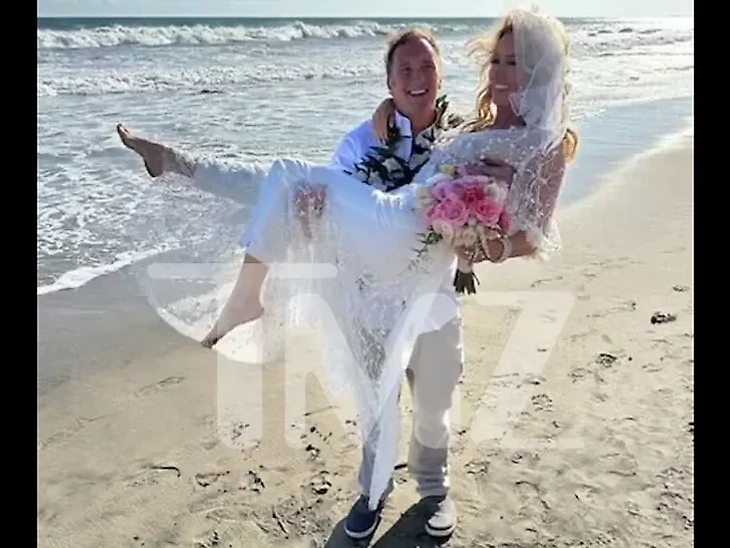 Свадьба, на которую были приглашены лишь близкие друзья и родственники, прошла в закрытом формате в Малибу, однако таблоиду удалось добыть фотографию с мероприятия.