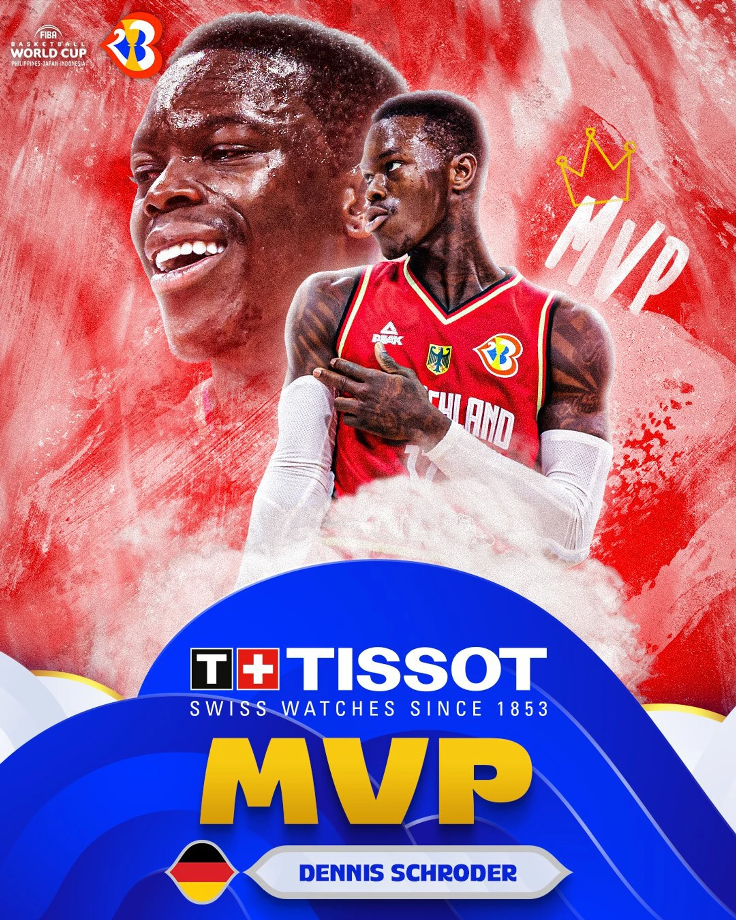 Разыгрывающий сборной Германии Деннис Шредер признан самым ценным игроком чемпионата мира 2023 года.