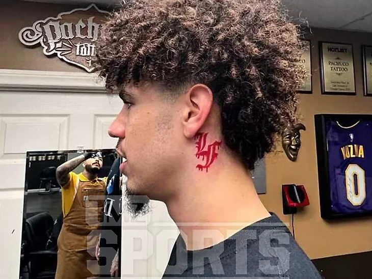 Ламело Болл сделал на шее татуировку логотипа своего бренда одежды LaFrancé