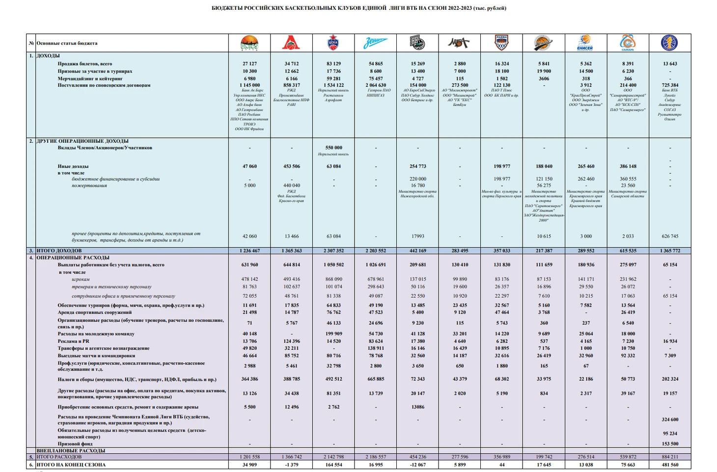 Бюджеты российских клубов Единой лиги ВТБ в сезоне-22/23: