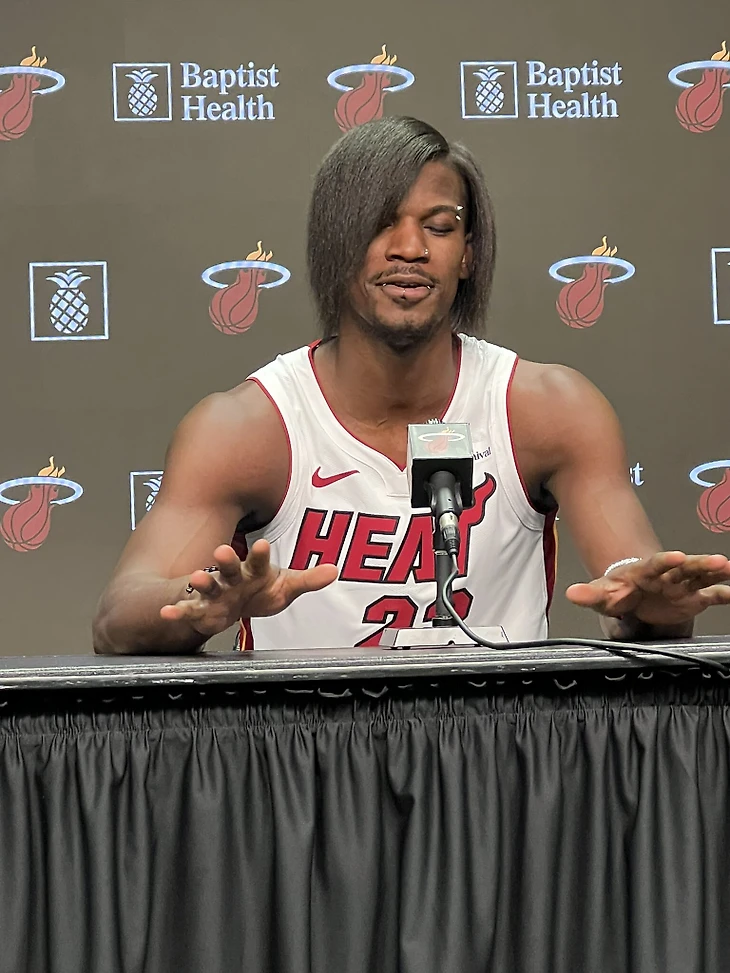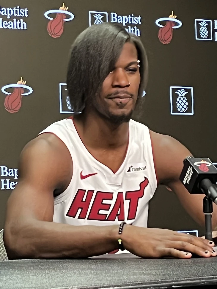 Лидер «Майами» Джимми Батлер предстал перед журналистами в образе эмо. Форвард сделал пирсинг, накрасил ногти и сменил прическу.