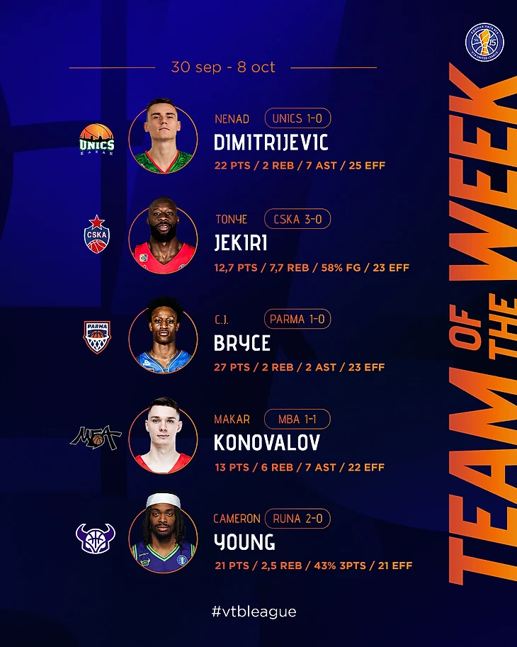 Единая лига ВТБ представила символическую пятерку игровой недели.