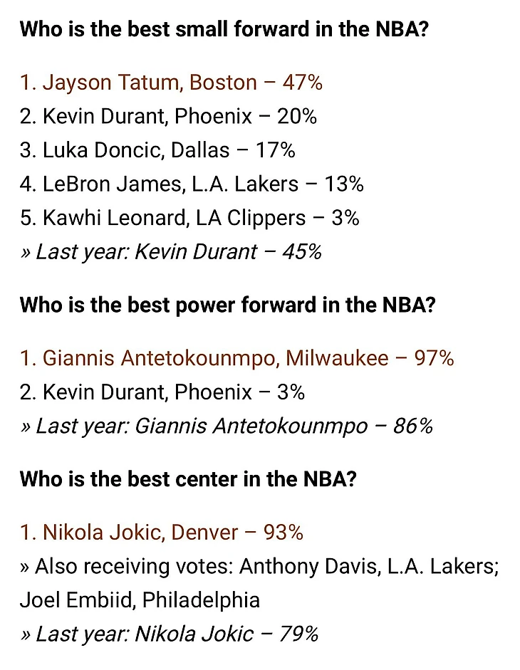Генеральные менеджеры НБА назвали лучших игроков на каждой позиции