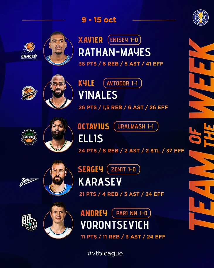 Единая лига ВТБ представила символическую пятерку по итогам очередной игровой недели.