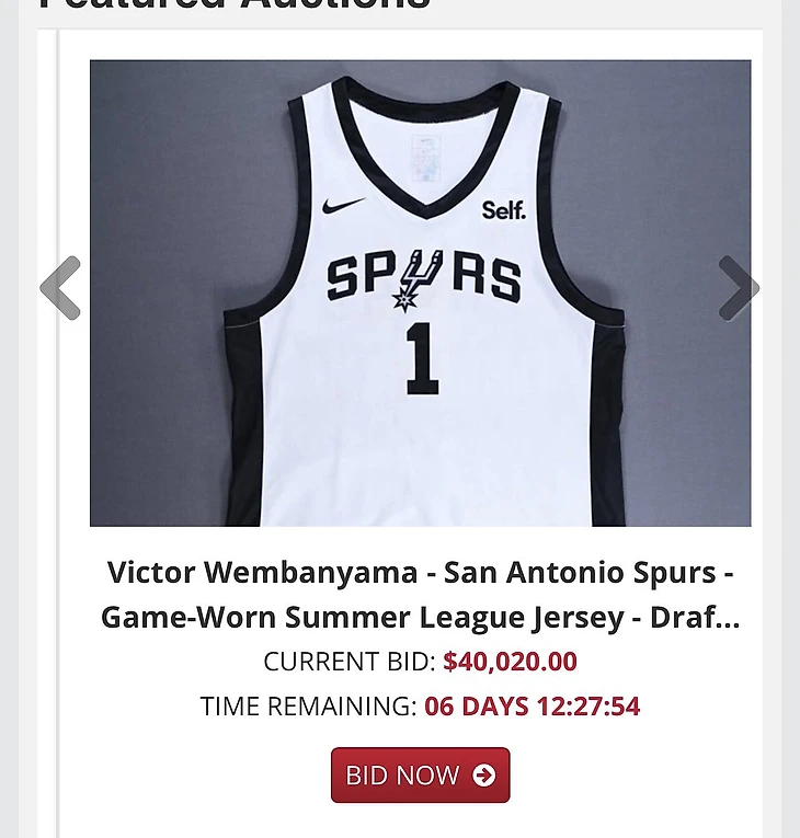 Майка, в которой Вембаньяма дебютировал в Летней лиге, оценивается в 40 000 долларов за 6 дней до конца аукциона