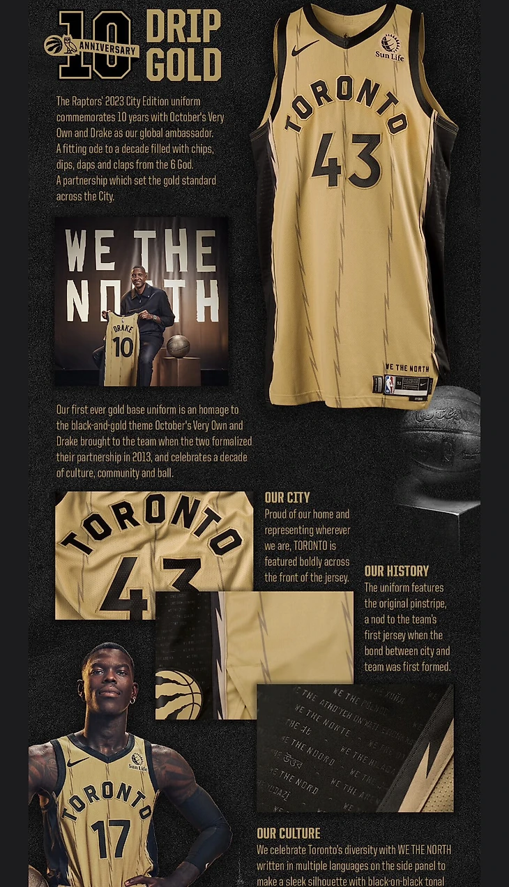 Первая в истории клуба золотистая форма изготовлена в честь 10-летия сотрудничества с брендом канадского рэпера Дрейка October’s Very Own.