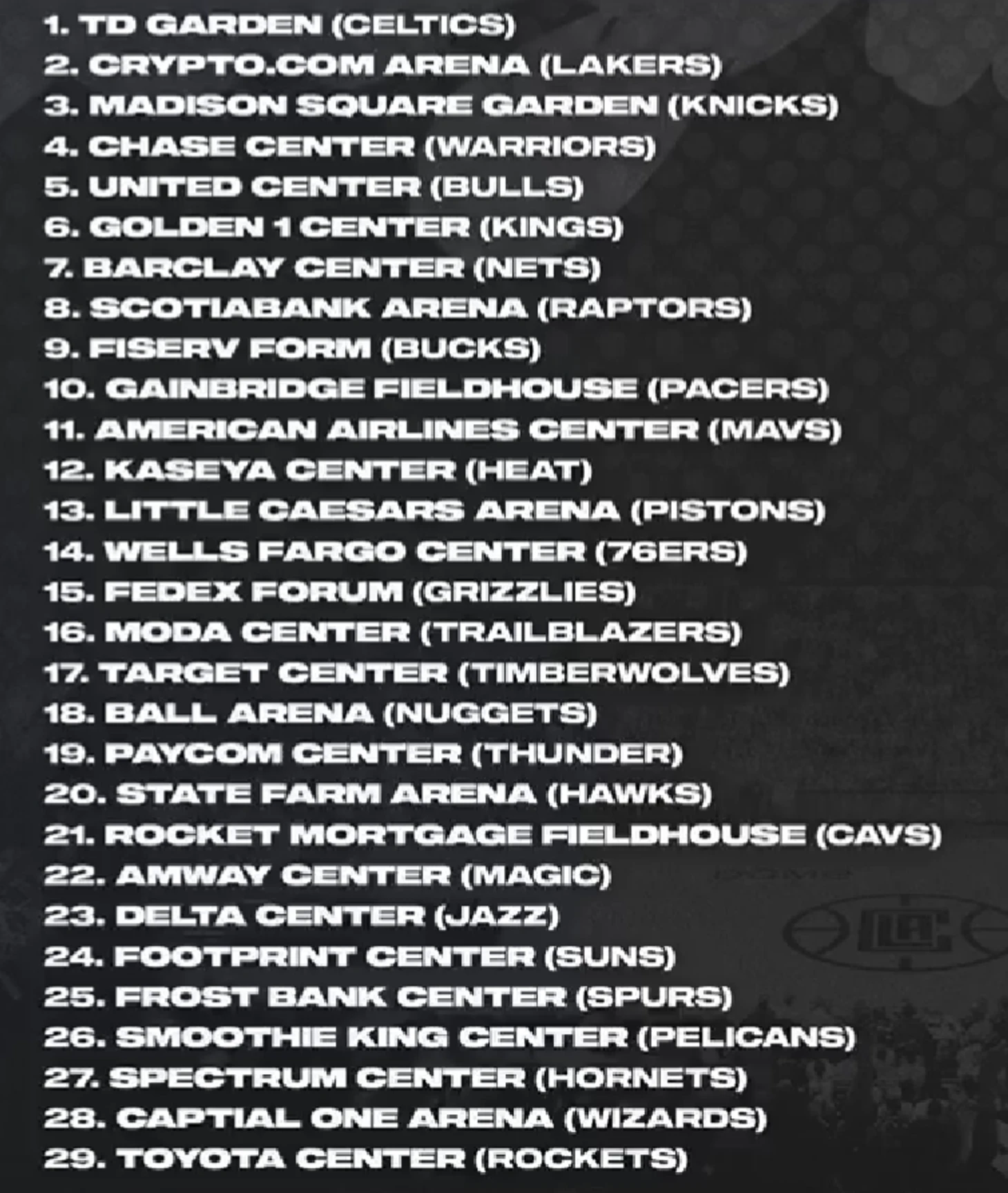 По итогам голосования журналистов «Ти Ди Гарден», Crypto.com Arena и «Мэдисон Сквер Гарден» признаны тремя лучшими аренами НБА