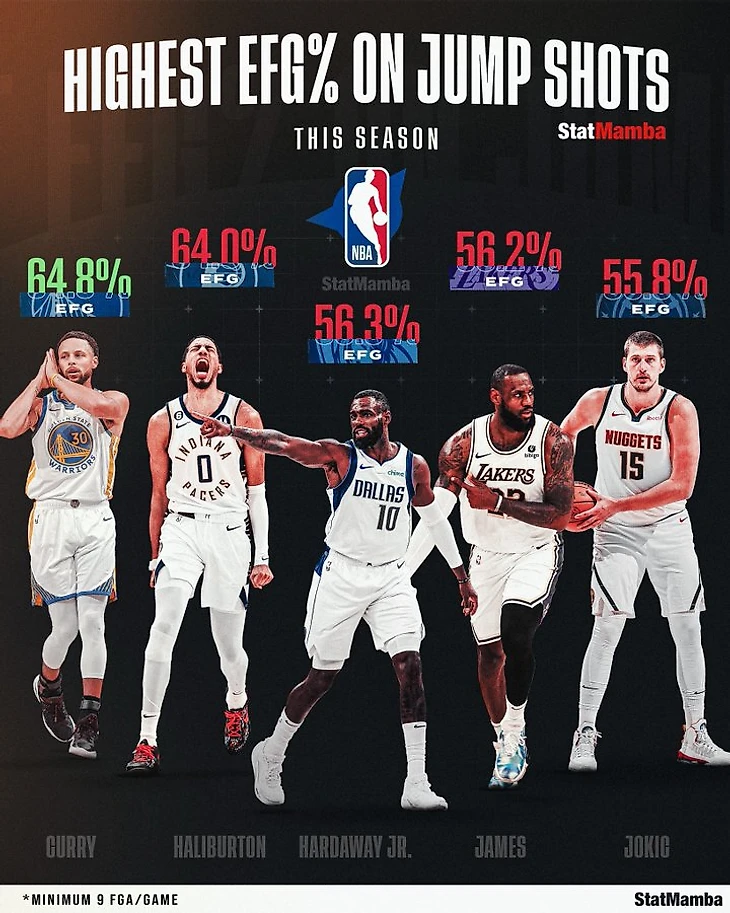 Стефен Карри и Тайриз Халибертон – лидеры НБА по eFG% при бросках в прыжке