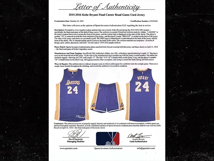 Форма Кобе Брайанта с его последнего матча будет продана более чем за полмиллиона долларов
