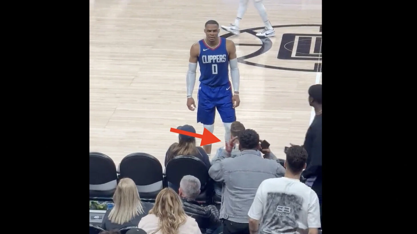 Разыгрывающий «Клипперс» Расселл Уэстбрук во время матча с «Денвером» (104:113) вступил в перепалку с болельщиком из первых рядов, который провоцировал его по ходу встречи.