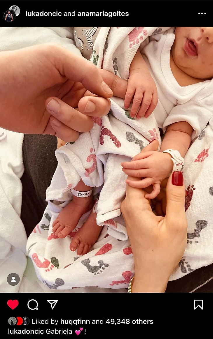 Словенец на своей странице в соцсети поделился новостью, что у него родилась дочь. Дончич опубликовал фотографию и подписал: «Габриэла!»