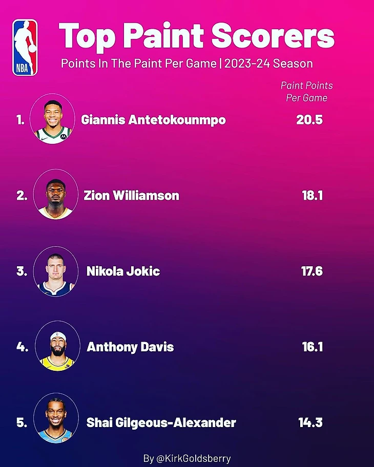 Яннис Адетокумбо, Зайон Уильямсон и Никола Йокич лидируют в сезоне НБА по очкам из трехсекундной