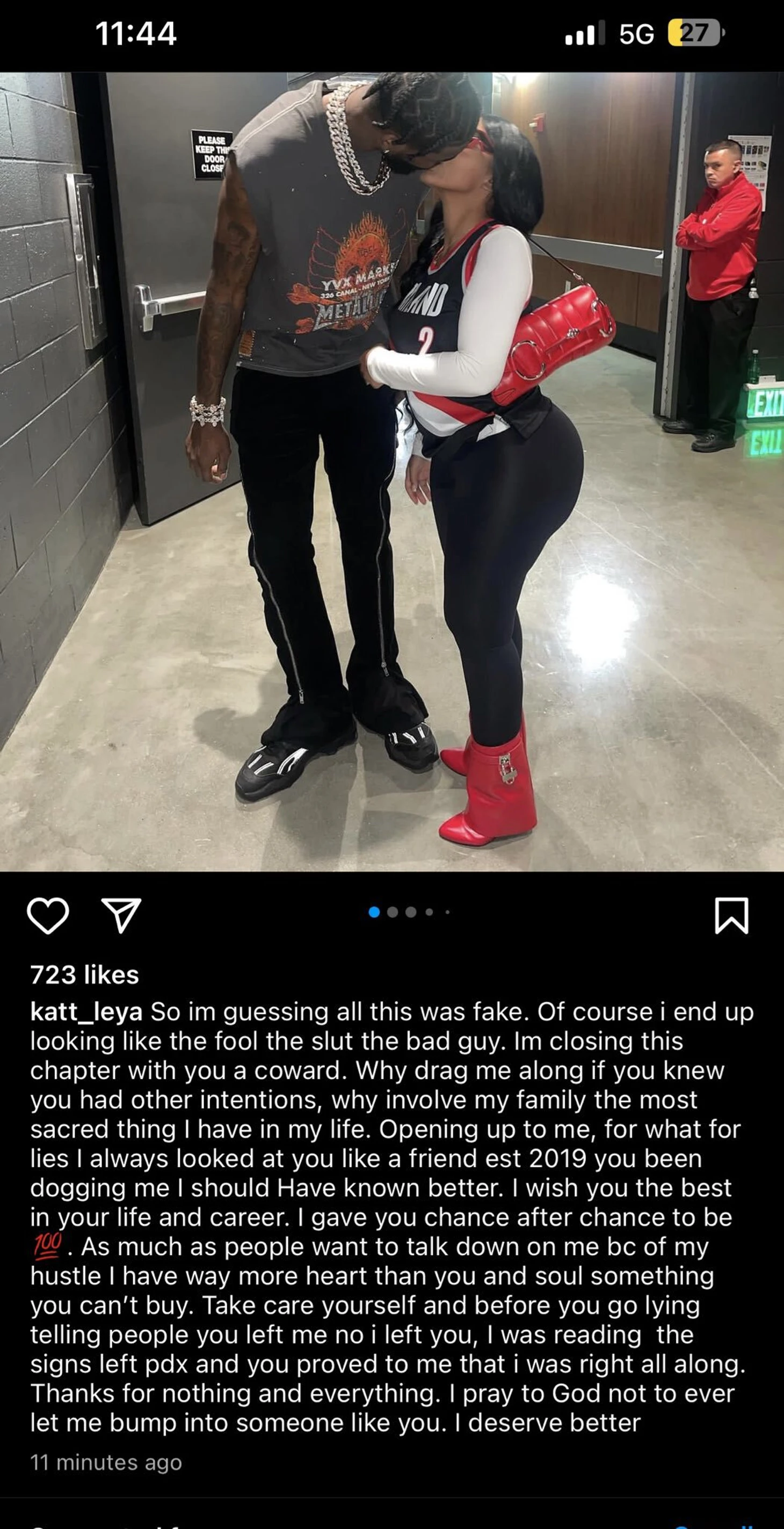 Я всегда смотрела на тебя как на друга – с 2019 года ты меня преследовал. Должна была действовать разумнее. Желаю тебе всего наилучшего в твоей жизни и карьере. Давала тебе шанс за шансом. Как бы люди ни хотели говорить обо мне свысока из-за моей «профессиональной деятельности», во мне гораздо больше человеческого, чем в тебе, а это нигде не купишь. Береги себя, и прежде чем начнешь врать, говоря людям, что ты бросил меня, – нет, я бросила тебя.