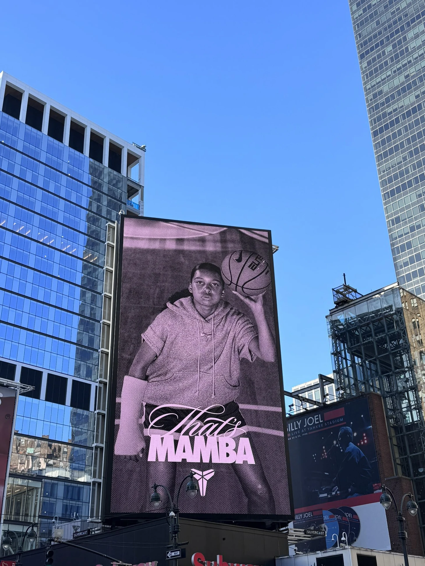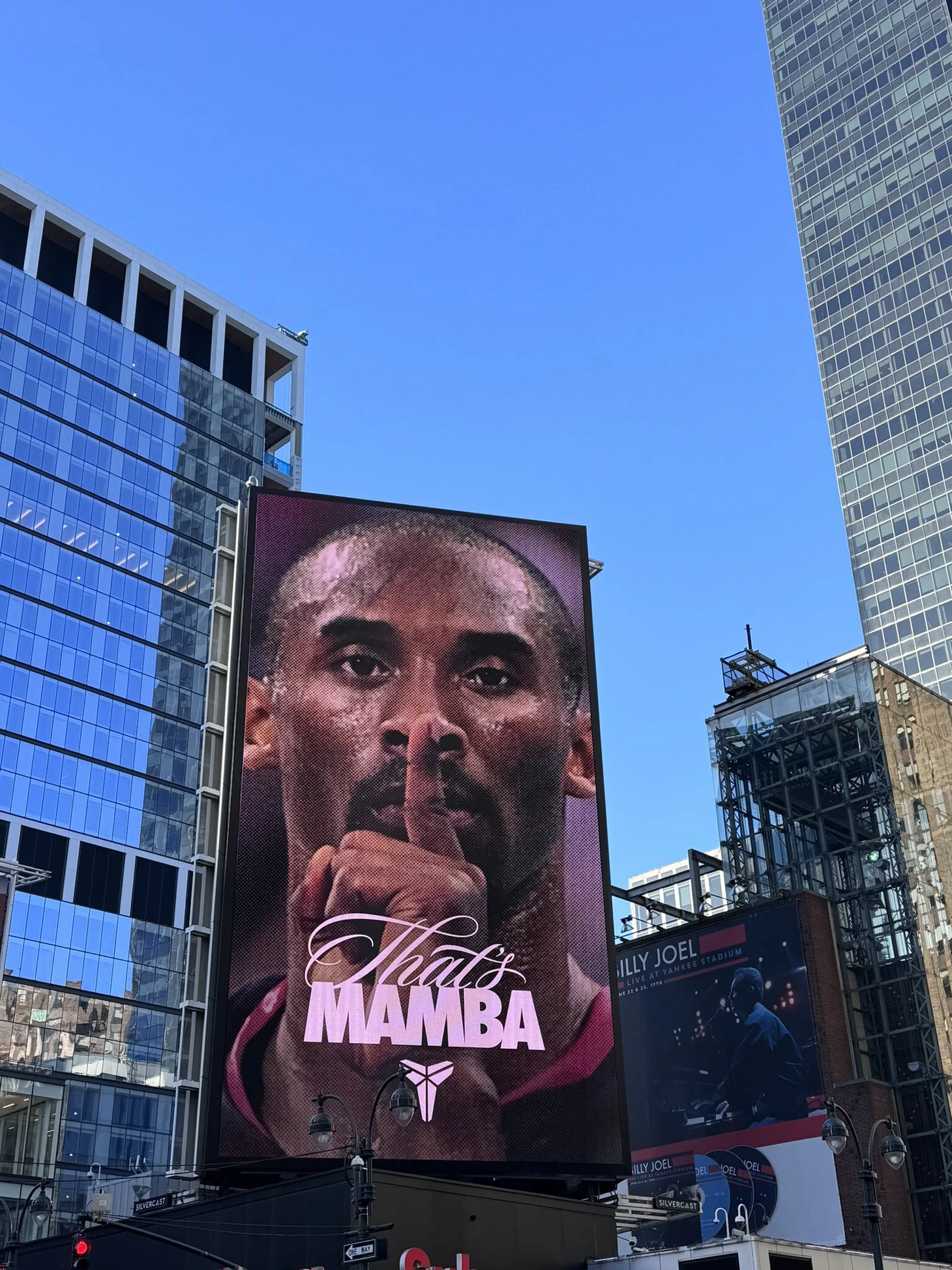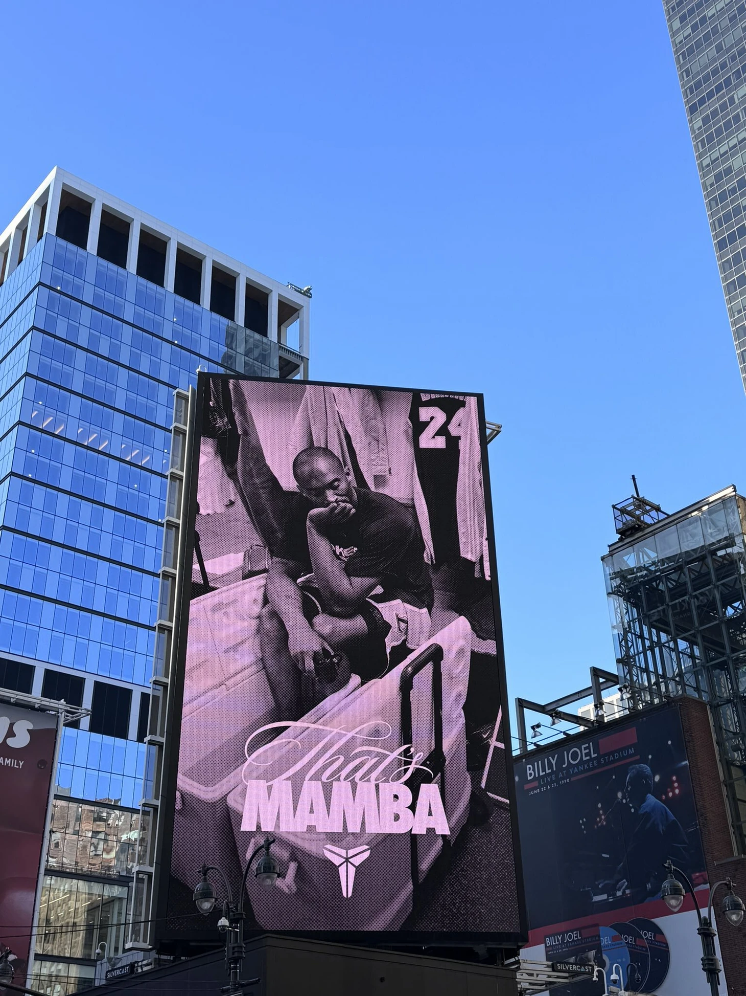 В Нью-Йорке появились новые билборды с легендой «Лейкерс» Кобе Брайантом и надписью «That’s Mamba» («Это Мамба»).