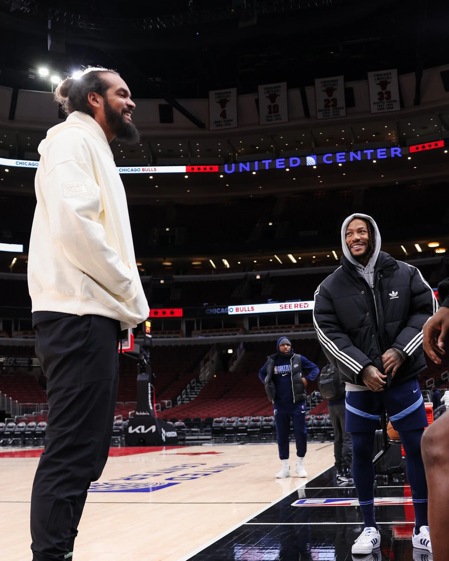 Накануне матча «Буллс» опубликовали совместное фото бывших игроков команды Деррика Роуза и Жоакима Ноа.