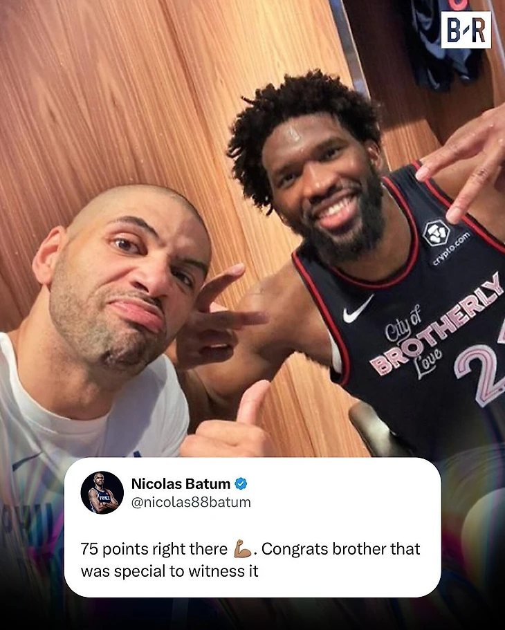 Ранее аналогичным постом Николя Батюм поздравил центрового «Филадельфии» Джоэла Эмбиида с 70 очками в матче.
