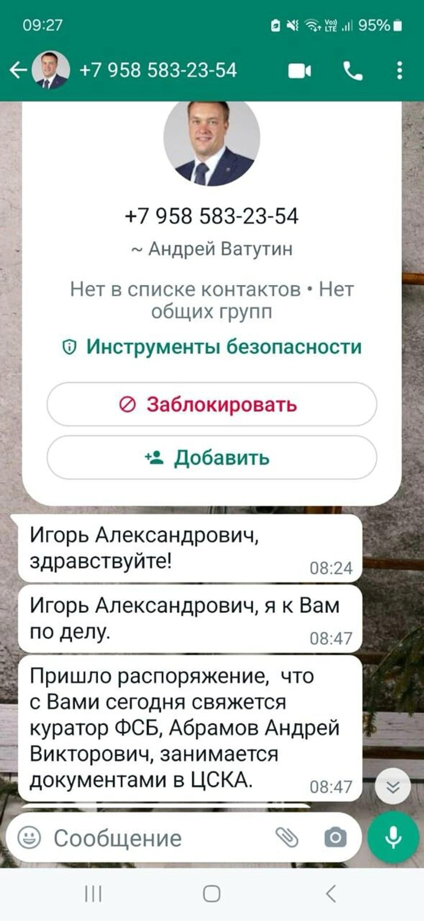 Мошенники создают фейковые аккаунты в соцсетях от имени президента ЦСКА и рассылают сообщения знающим его людям из баскетбольной среды.