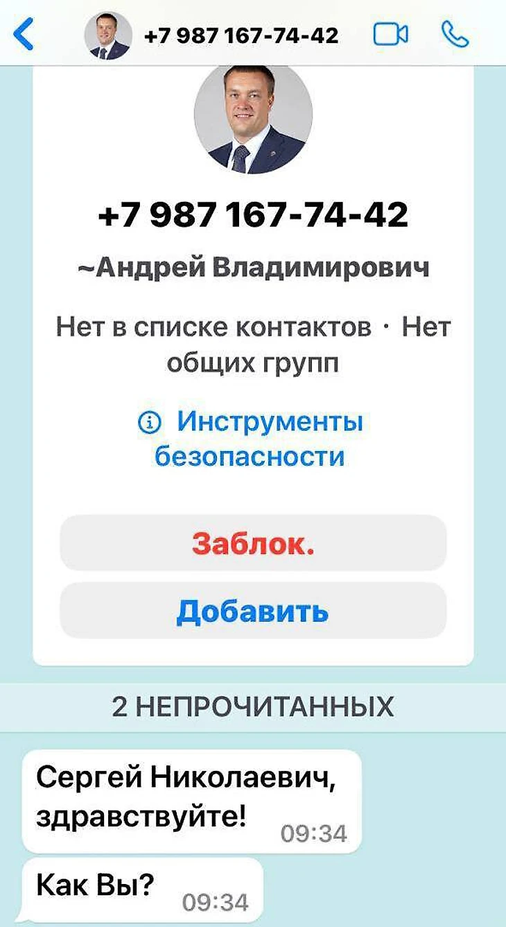 Мошенники в интернете пишут сообщения от имени Андрея Ватутина