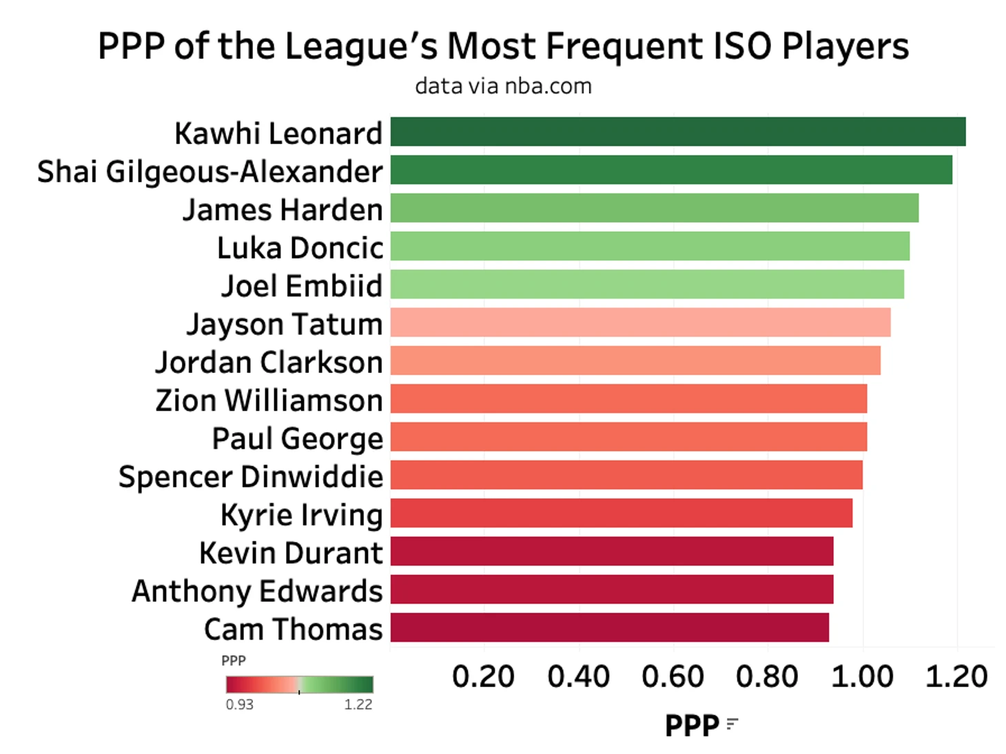 Представлен список лидеров сезона НБА по эффективности игры в изоляциях.