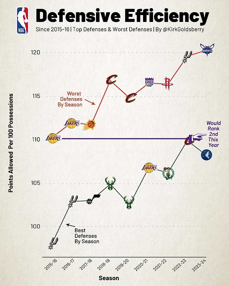 Эксперт Кирк Голдсберри сравнил лучшие и худшие команды в обороне за последние 9 лет