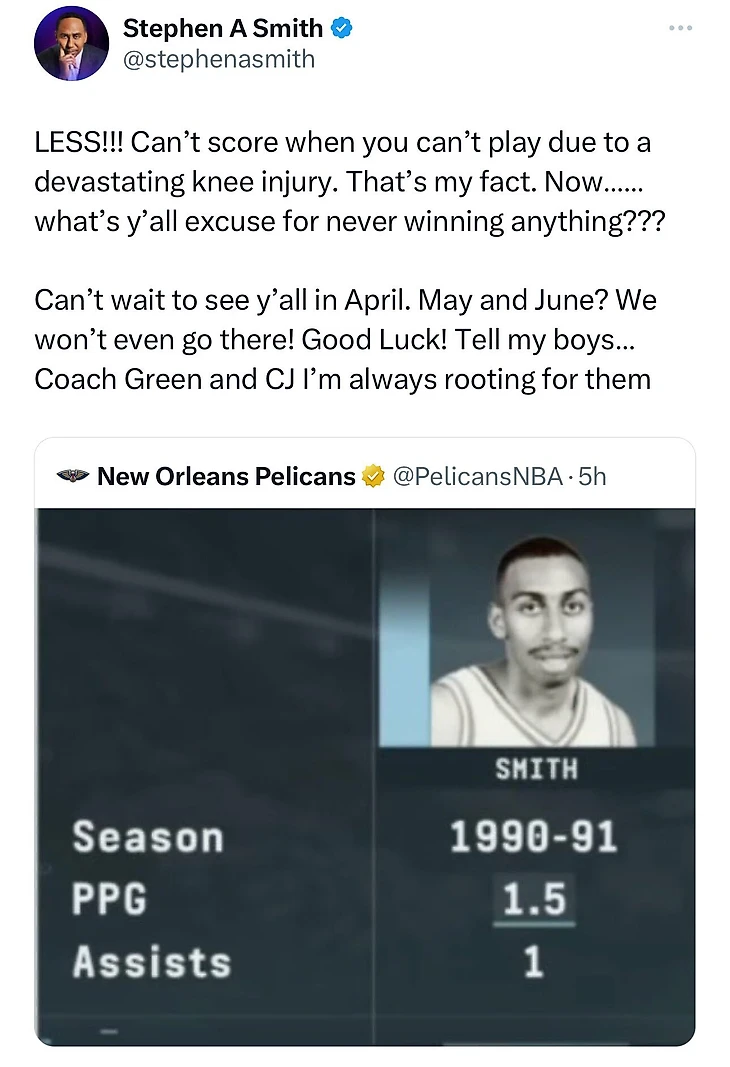 Стивен Эй Смит: «Дело не в игре Зайона, а в том, сколько бургеров он съедает»