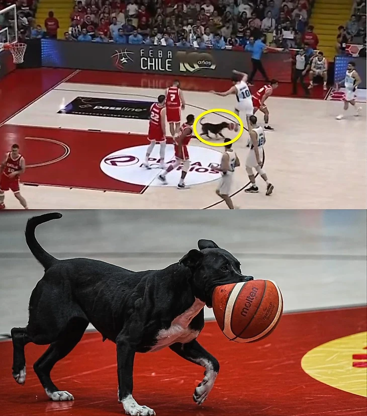 В Чили собака выскочила на площадку и прокусила мяч.