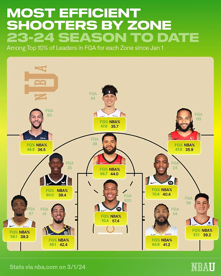 NBA University опубликовал диаграмму самых эффективных шутеров сезона-2023/24.