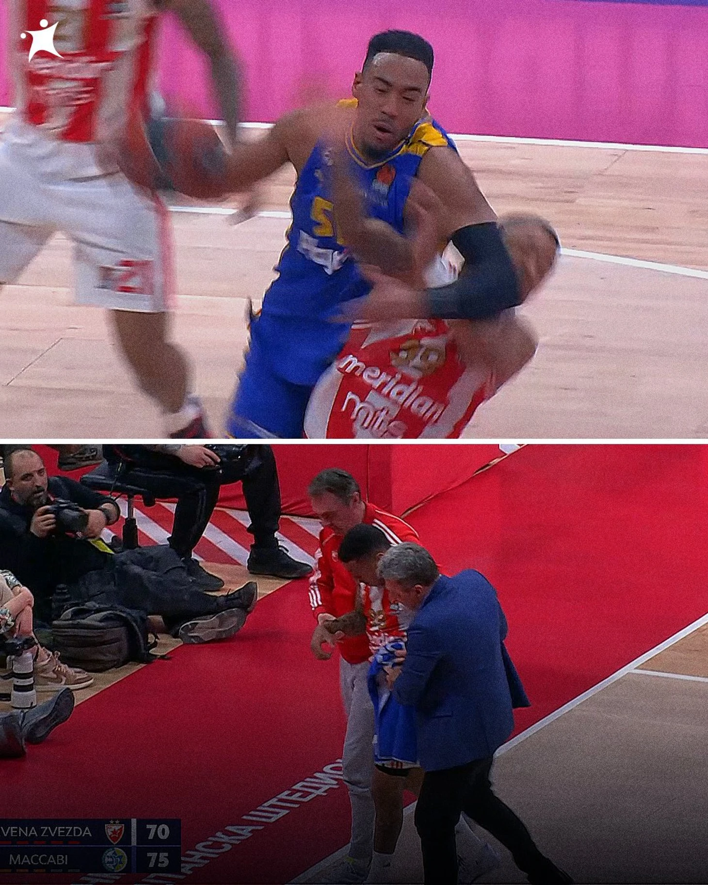 Разыгрывающий «Црвены Звезды» вступил в стычку с Бонзи Колсоном за 2 минуты 21 секунды до конца четвертой четверти. Форвард «Маккаби» махнул левой рукой и ударил бразильца по лицу.