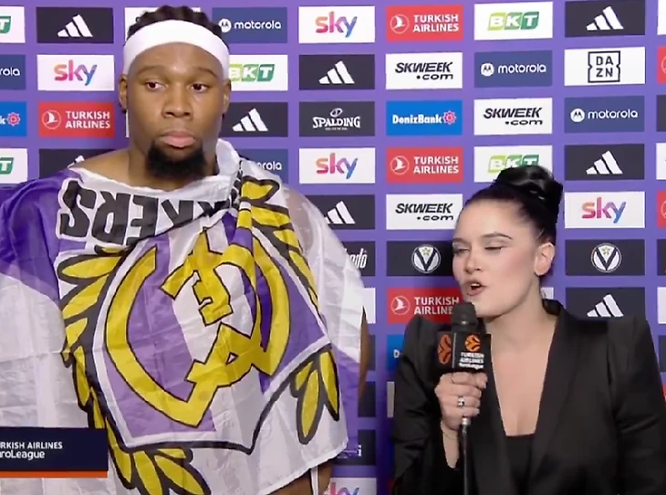 Гершон Ябуселе дал послематчевое интервью, обернувшись во флаг «Реала».