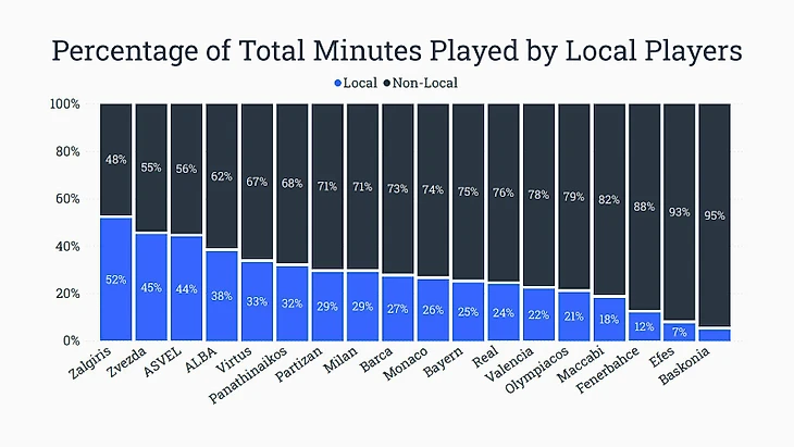 Опубликован рейтинг команд Евролиги по проценту игрового времени местных игроков.