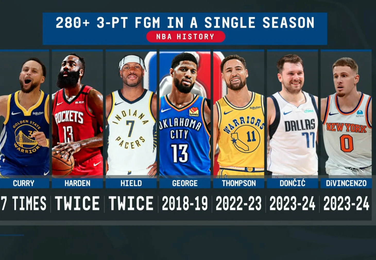 Карри в седьмой раз за карьеру реализовал 280+ трехочковых в одном сезоне.