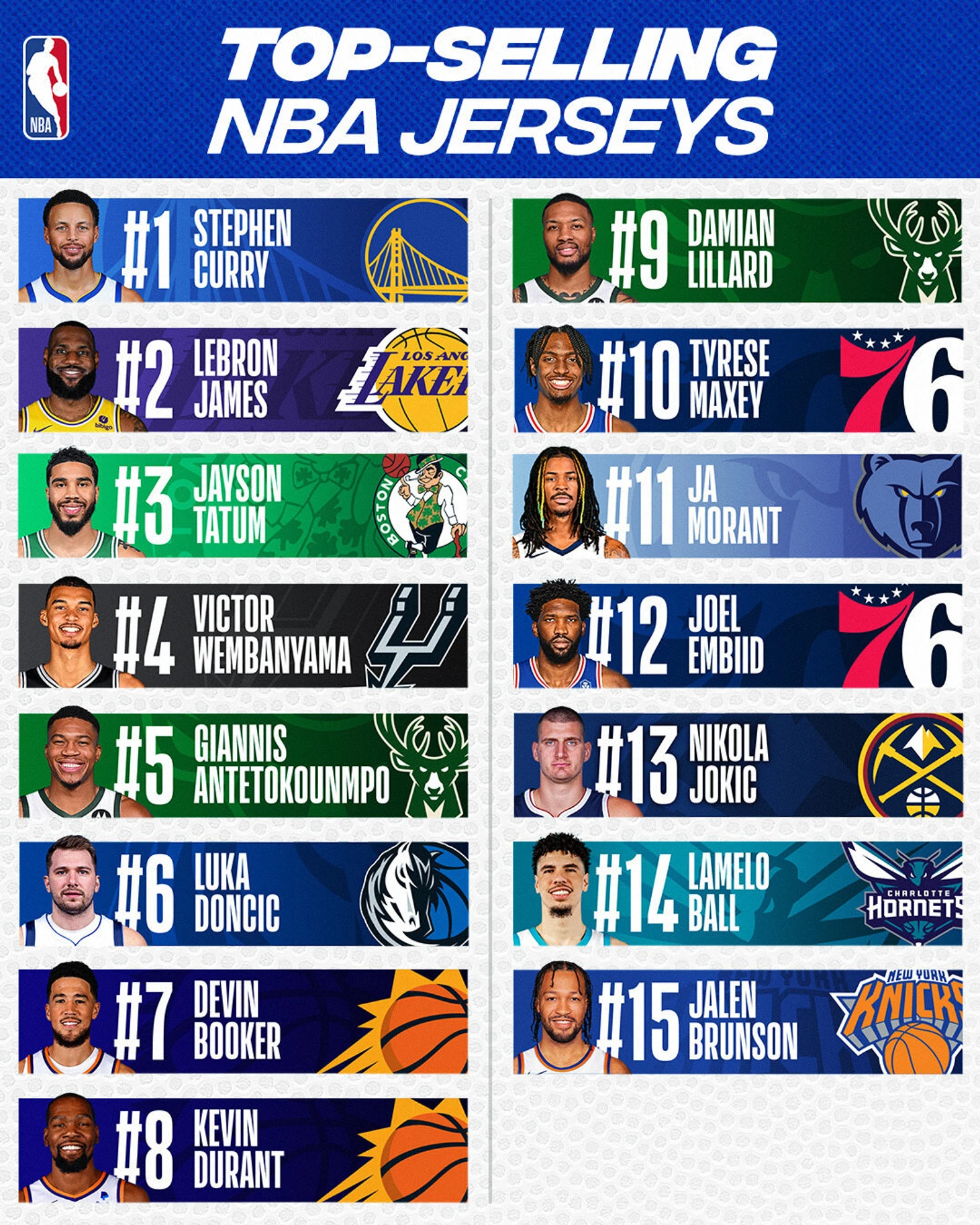 НБА выложила список самых продаваемых маек по второй половине сезона.