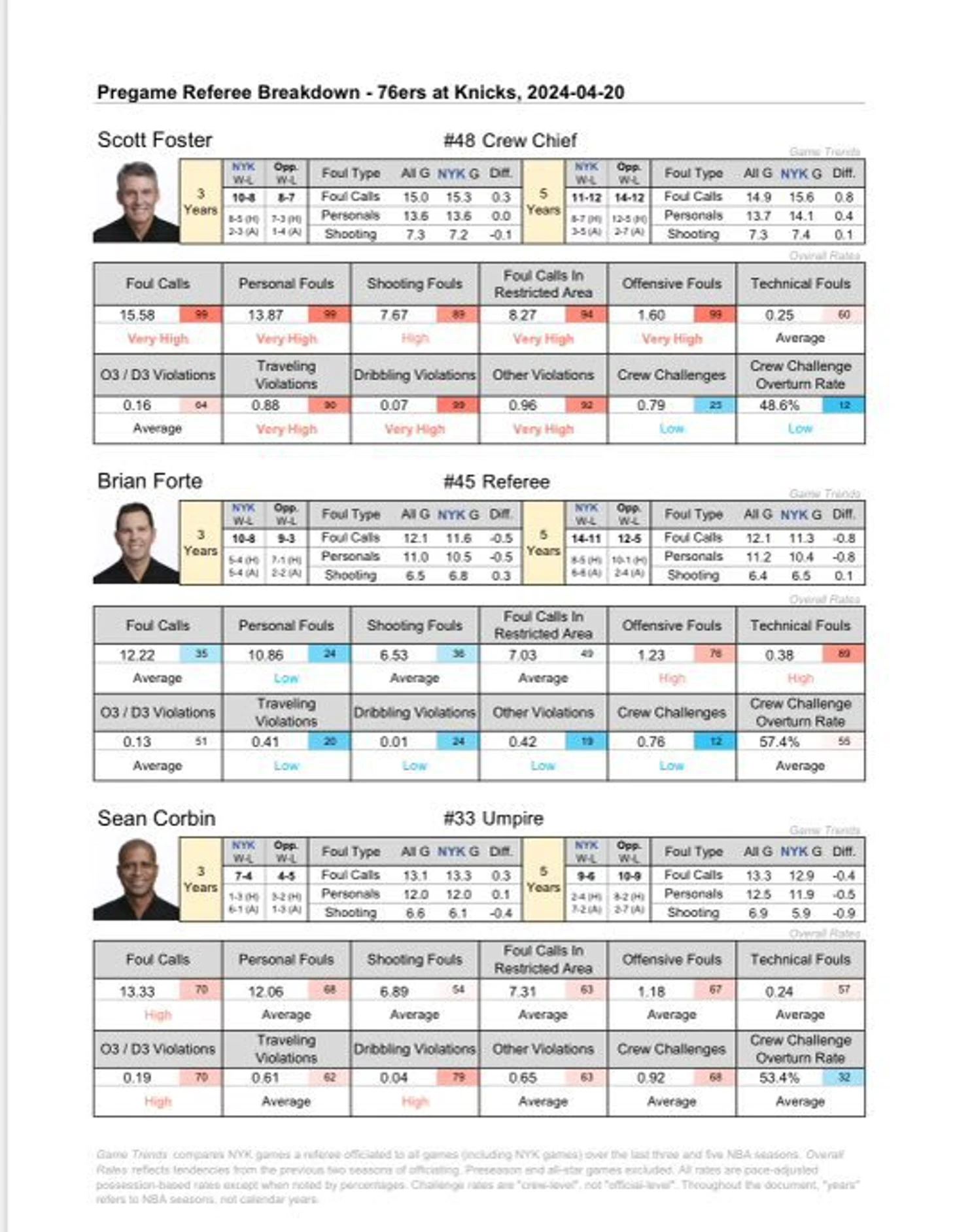 «Никс» добавили статистику арбитров матча к заметкам для журналистов перед игрой с «Сиксерс»