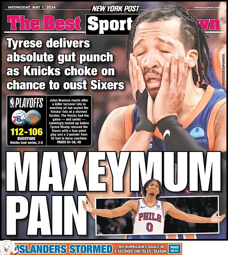 New York Post посвятил обратную страницу поражению «Никс» от «Сиксерс» в 5 матче.