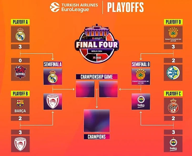 В полуфинальных матчах плей-офф «Реал» сыграет с «Олимпиакосом», а «Панатинаикос» встретится с «Фенербахче».