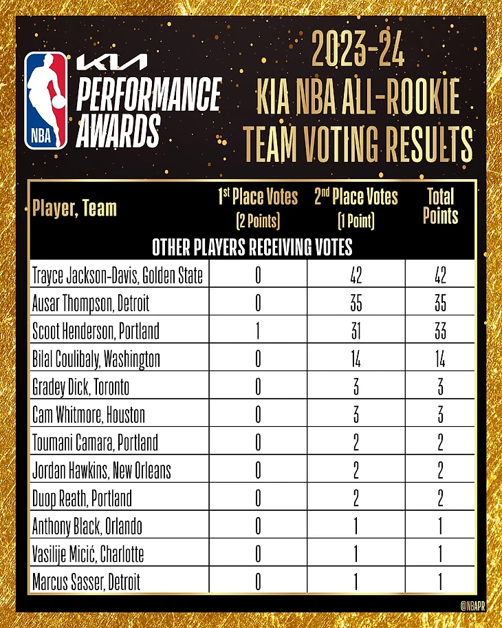 НБА объявила состав второй пятерки новичков сезона-2023/24.