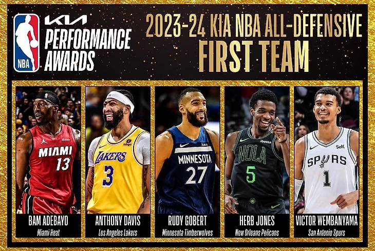Бэм Адебайо, Энтони Дэвис, Руди Гобер, Херберт Джонс и Виктор Вембаньяма – в 1-й символической пятерке по игре в защите
