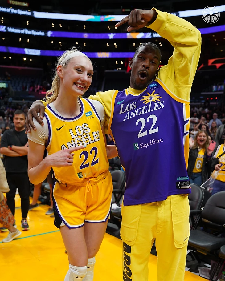 Звездный защитник «Майами» пришел на матч женской НБА «Лос-Анджелес» – «Даллас» (81:72) в майке новичка «Спаркс» Кэмерон Бринк.