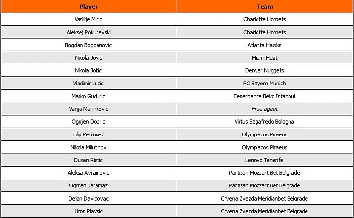 Светислав Пешич озвучил список из 16 игроков, попавших в расширенный состав.